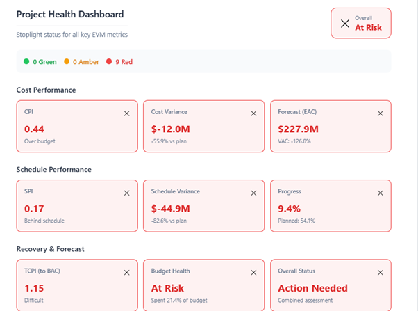 deviations early become big problems late. A CPI of 0.95 at 20% complete means